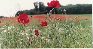 < Poppy seed needs light to germinate and this is why they appear in their thousands in disturbed soil whether it is the ploughed cornfield, the scarred battlefield or just our humble vegetable plots, newly dug. They can survive buried for centuries and have even been known to germinate from seed found in archaelogical excavations.