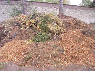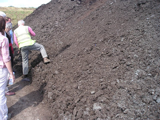 Green waste from the garden, as well as other material that will rot down, is brought by lorry to the site and piled up in long lines – windrows -stretching into the distance. The size of these heaps dwarf the heavy machinery used to move it.