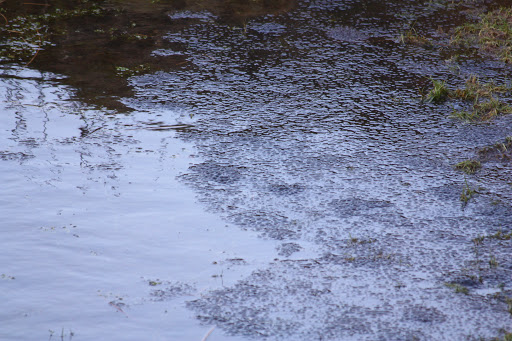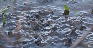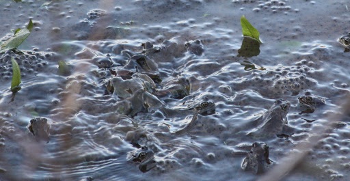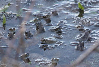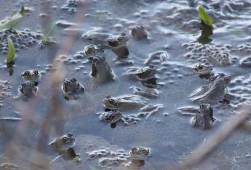 In normal springs the culmination of their journey is celebrated in a frenzied orgy in the calm water of the pond.  If you creep up on them, their presence betrayed by a carcophany of croaking, they become still and gaze up at you with a degree of embarrassment.  Trying to look innocent they sit willing you to believe that they wouldn’t do anything so vulgar (or exciting, depending on your outlook) as sex in public.  As soon as they think the coast is clear they return to their shenanigans making the pond look like a whirlpool bathtub.