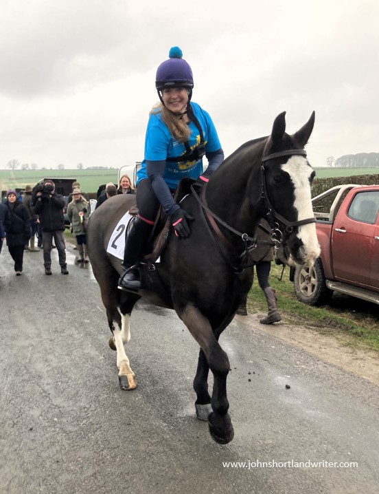 Carole always said that taking part in the race was all about Kate and her horse, Lorna. The course is difficult for it takes place not on a conventional racecourse but along muddy and often rutted lanes, tracks and field margins. Carole’s intention was solely to reach the finish line with both her and Lorna in one piece. As it happened, she did manage this, and in some style, as can be seen from the photos, both thoroughly enjoyed themselves. To date, many thousands of pounds has been raised for the hospice in Kate’s memory but more is always welcome. If you are able to add to the funds and help to take it over £10,000, Carole, the hospice and Kate’s husband, Chris will be more than grateful. Click on the link here to donate.