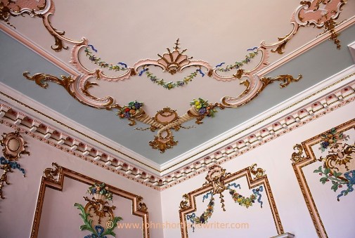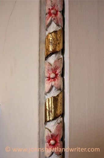 It will be interesting to see if the Krishna coloured plasterwork remains for posterity. Should it be preserved as it is now? Is this a refreshing interpretation of traditional, high quality plasterwork or sheer vandalism, an abhorrence that ought to be erased? Whatever your opinion, nothing quite prepares you for the visual ‘shock’ you experience when you first enter the room.