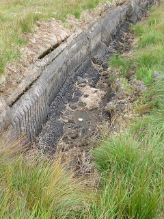 Turf cutting creates deep trenches across the bogs