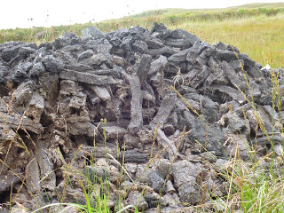 Connemara turf stacked ready for carting – cut to a very different shape to Exmoor