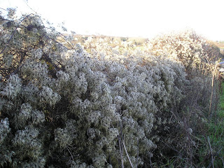 Now the snow has gone and the seed heads, not quite as pristine as before, have recovered but still live up to their name. They swamp the lower, trimmed parts of the hedge and it is hard to imagine how the field maples, hawthorn, sloes and other woody plants cope and survive.
