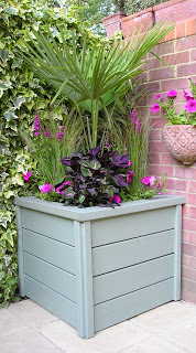 A combination of blues against a blue sky using Love-in-a-Mist (Nigella), Salvia nemerosa ‘Rugen’ and two Iris, ‘Jane Phillips’, pale blue with a pleasant scent and ‘Deep Blue’ with its dark, almost black flowers. The tall, ferny foliage in the background is the giant scabious, Cephalaria giganteum. Its pale yellow flowers give a complete colour variation to this part of the border as the iris fade and the Cephalaria opens to glow like moonshine behind the nigella and salvia.
