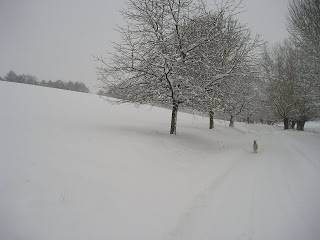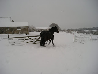 The UK has ground to a halt: airports closed, people trapped in their cars overnight, lorries jack-knifed, cars abandoned where they have slid and the councils running out of grit and salt. The latter doesn’t make any difference to the secret valley for the gritters don’t venture down here anyway. It is good to see the horses are safe, warm and well fed and enjoying the sensation of snow under their feet. And like us, they have beautiful views to look at from their barn during quiet moments. I wonder if they are aware how lucky they are! Or ourselves, for that matter – for in Scotland there is a report of a woman leaving home on Christmas Eve to collect the festive turkey and still unable to reach home, the road being blocked by snow. Apparantly, it is the first time in 36 years she and her husband have been apart.