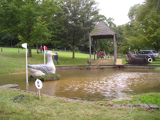 The water jumps are always a popular place so I visit them before the competition starts. People congregate here, not to see the jump carved to look like a duck, but in the hope of seeing the riders fall and get a good ducking!