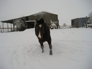 The UK has ground to a halt: airports closed, people trapped in their cars overnight, lorries jack-knifed, cars abandoned where they have slid and the councils running out of grit and salt. The latter doesn’t make any difference to the secret valley for the gritters don’t venture down here anyway. It is good to see the horses are safe, warm and well fed and enjoying the sensation of snow under their feet. And like us, they have beautiful views to look at from their barn during quiet moments. I wonder if they are aware how lucky they are! Or ourselves, for that matter – for in Scotland there is a report of a woman leaving home on Christmas Eve to collect the festive turkey and still unable to reach home, the road being blocked by snow. Apparantly, it is the first time in 36 years she and her husband have been apart.